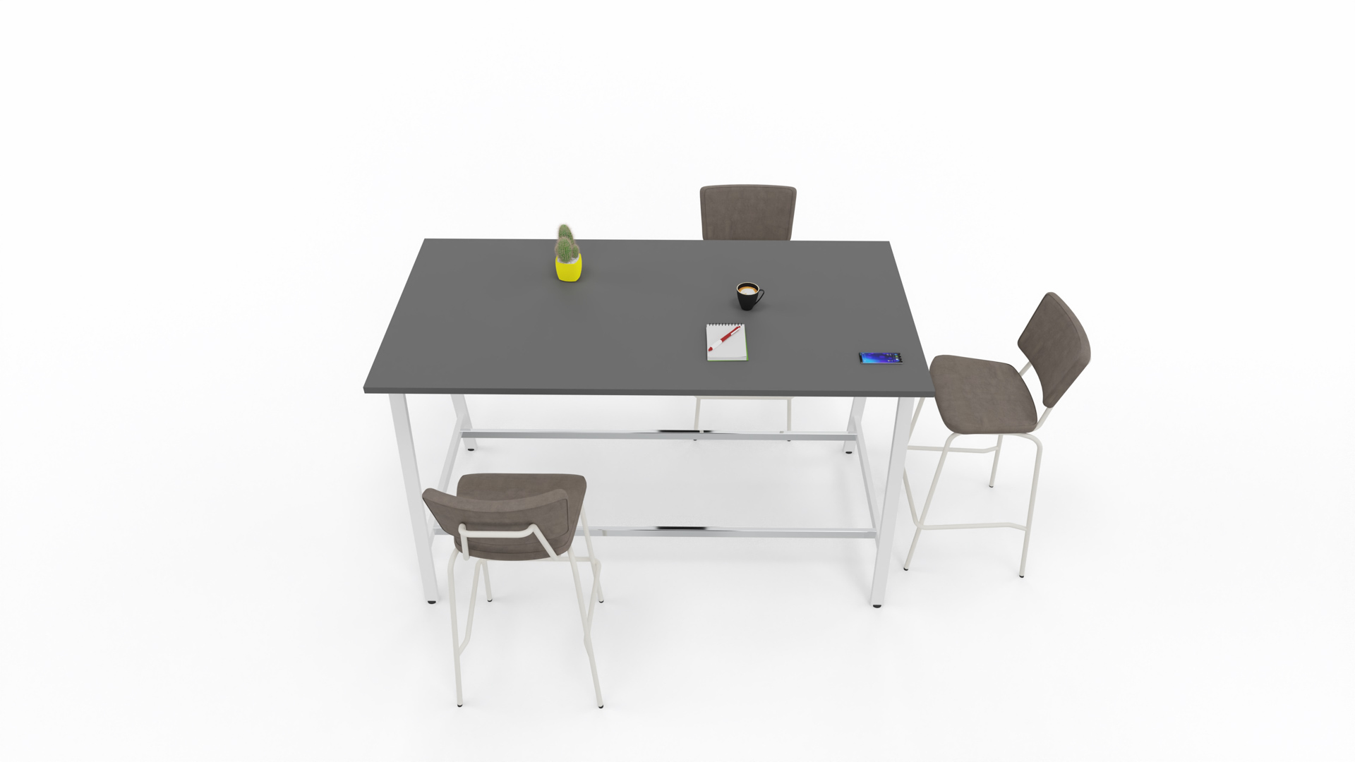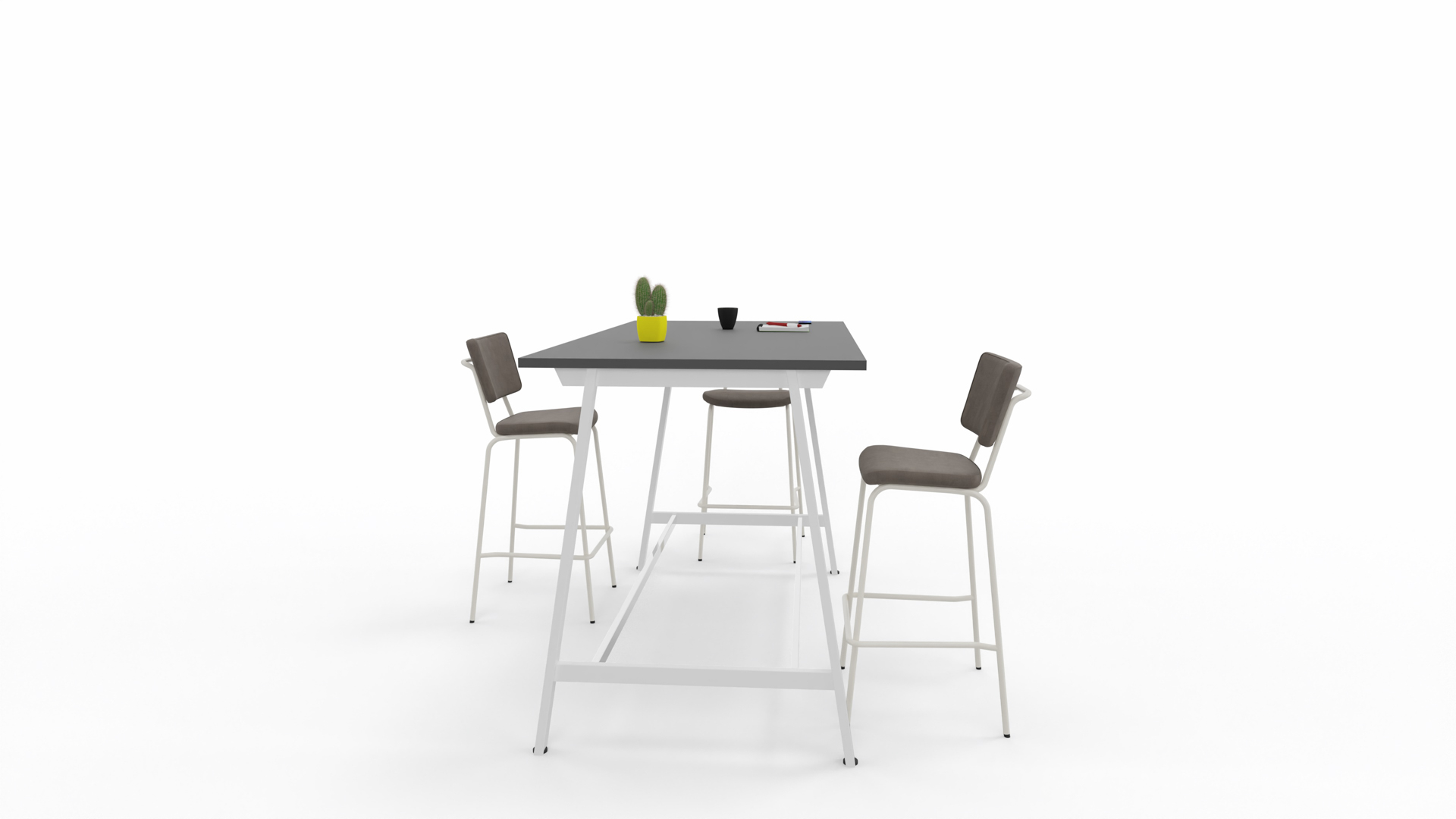 Aranżacja stołu wysokiego Idea A pozwala stworzyć atmosferę do swobodnej konwersacji. To rozwiązanie przeznaczone do nowoczesnych, wielofunkcyjnych przestrzeni. Pozwala stworzyć miejsce zarówno do krótkotrwałej pracy, jak i nieformalnych spotkań i rozmów.