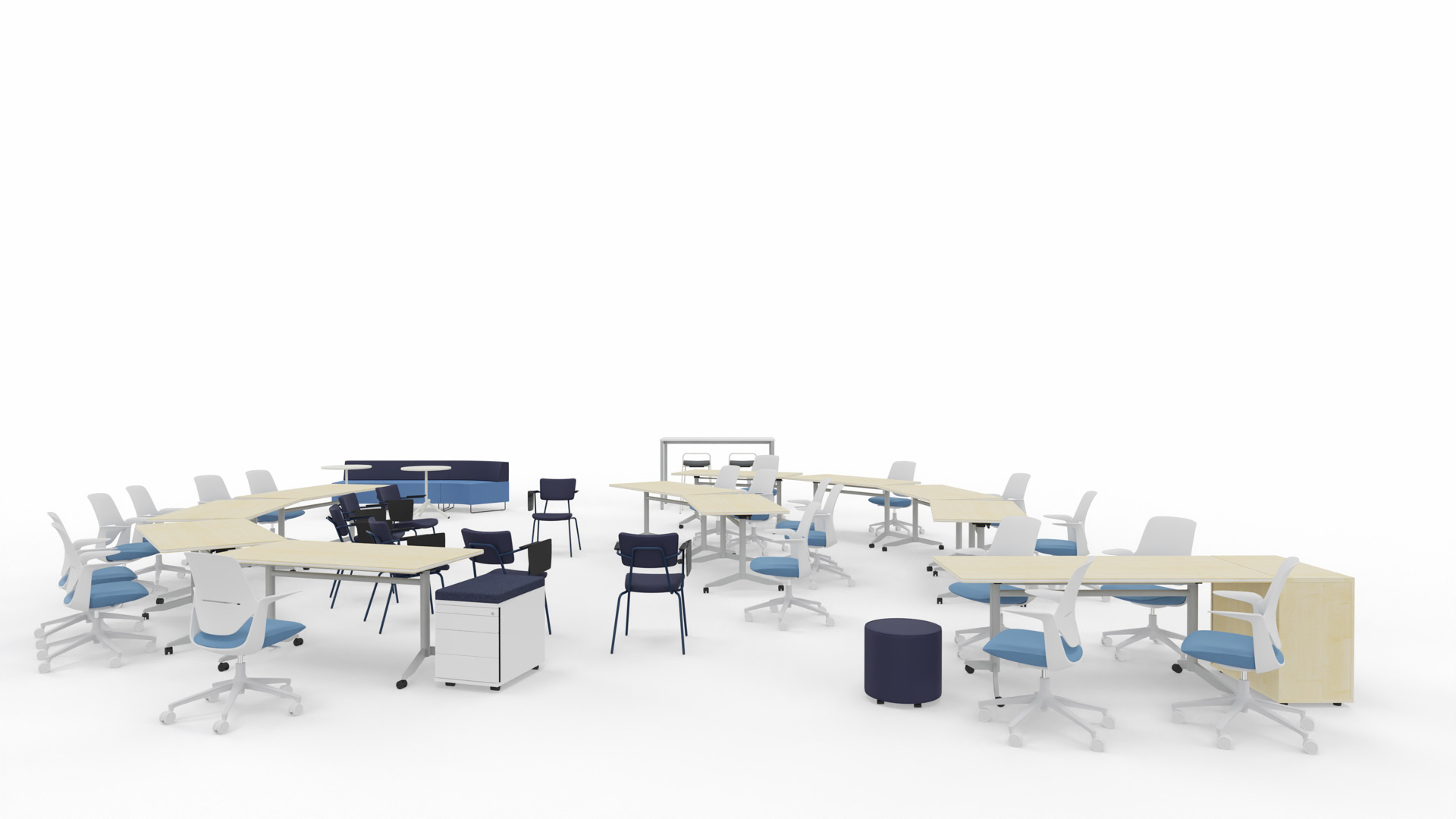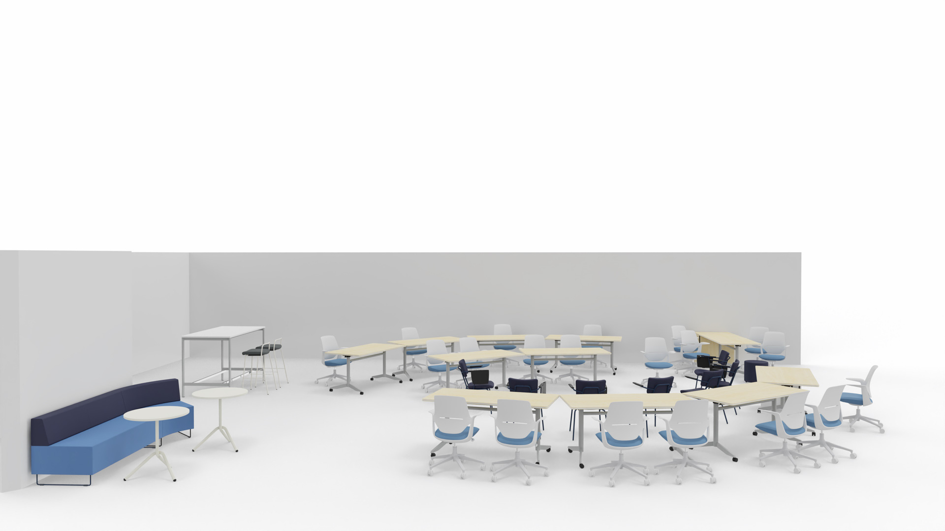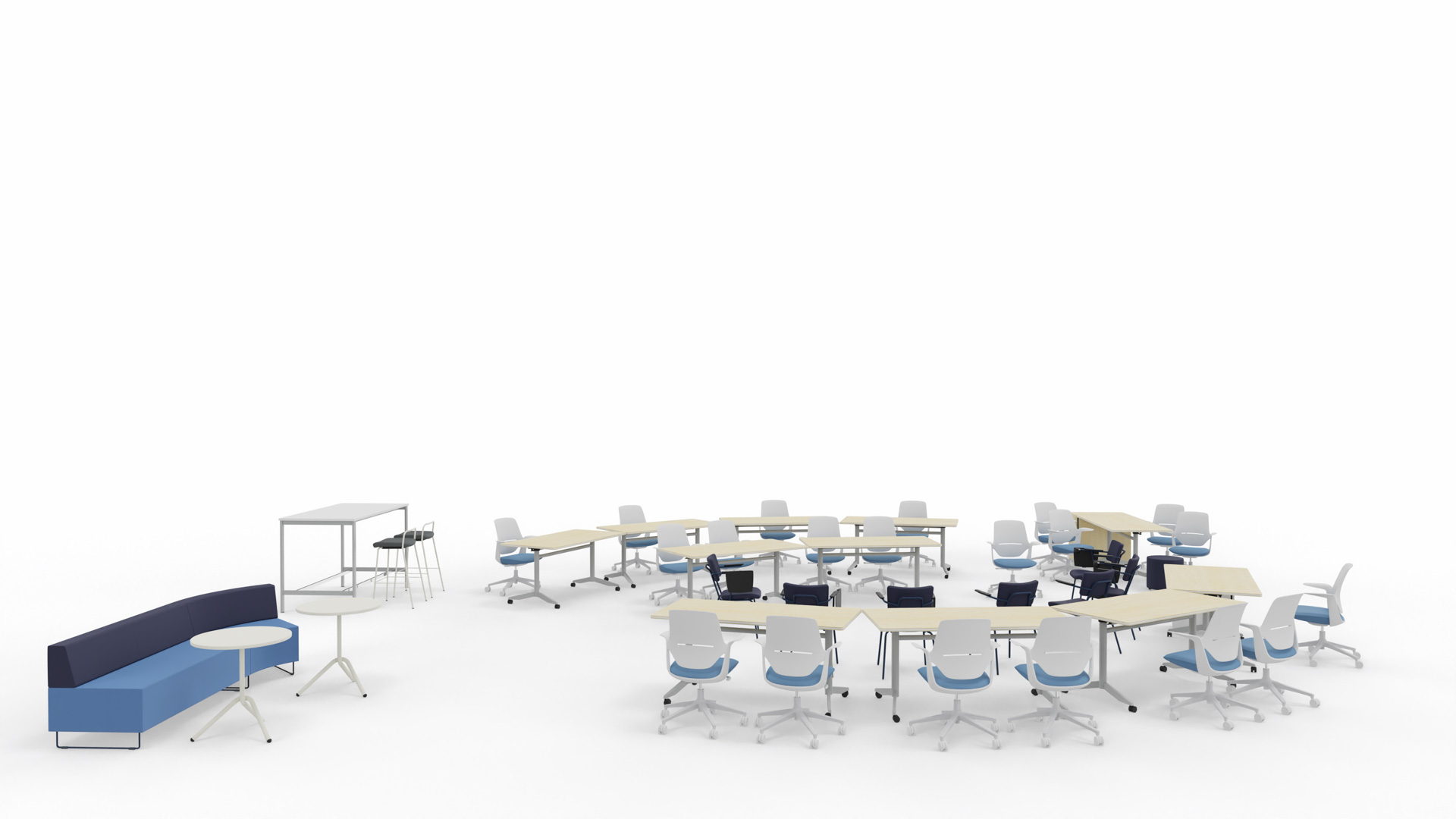 The set with the use of I-eM seminar tables provides countless arrangement configurations. It can easily be adapted to the specific needs of your meeting. The folding top mechanism allows for stacking the tables and thus minimizing the amount of space required to store them. Idea H table complements the room and ensures extra work space while the pedestals make it easier to store office supplies.