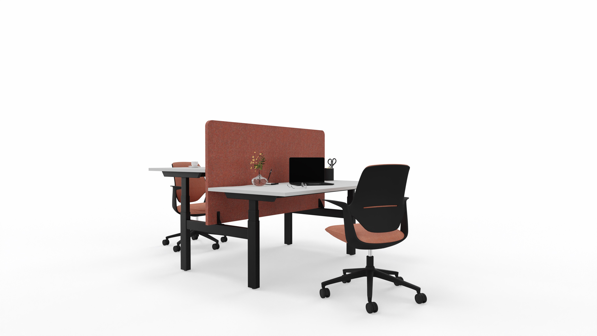 Lano-E 300 F Bench desk with electric height adjustment increases productivity and has a positive impact on the health of employees. The bench version of the desk saves office space and creates two workstations in one while still adjusting to the user's individual work style.