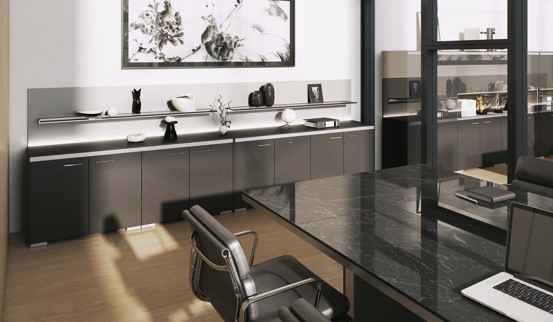 Ario showcases complement executive offices. They create a unique whole with other Ario furniture.