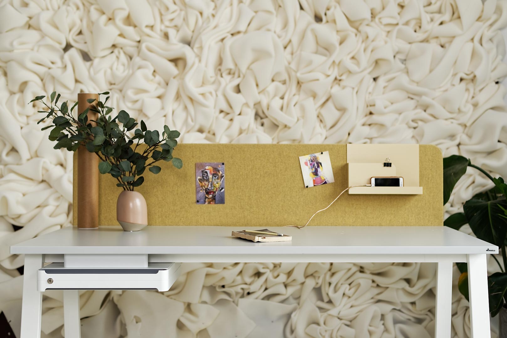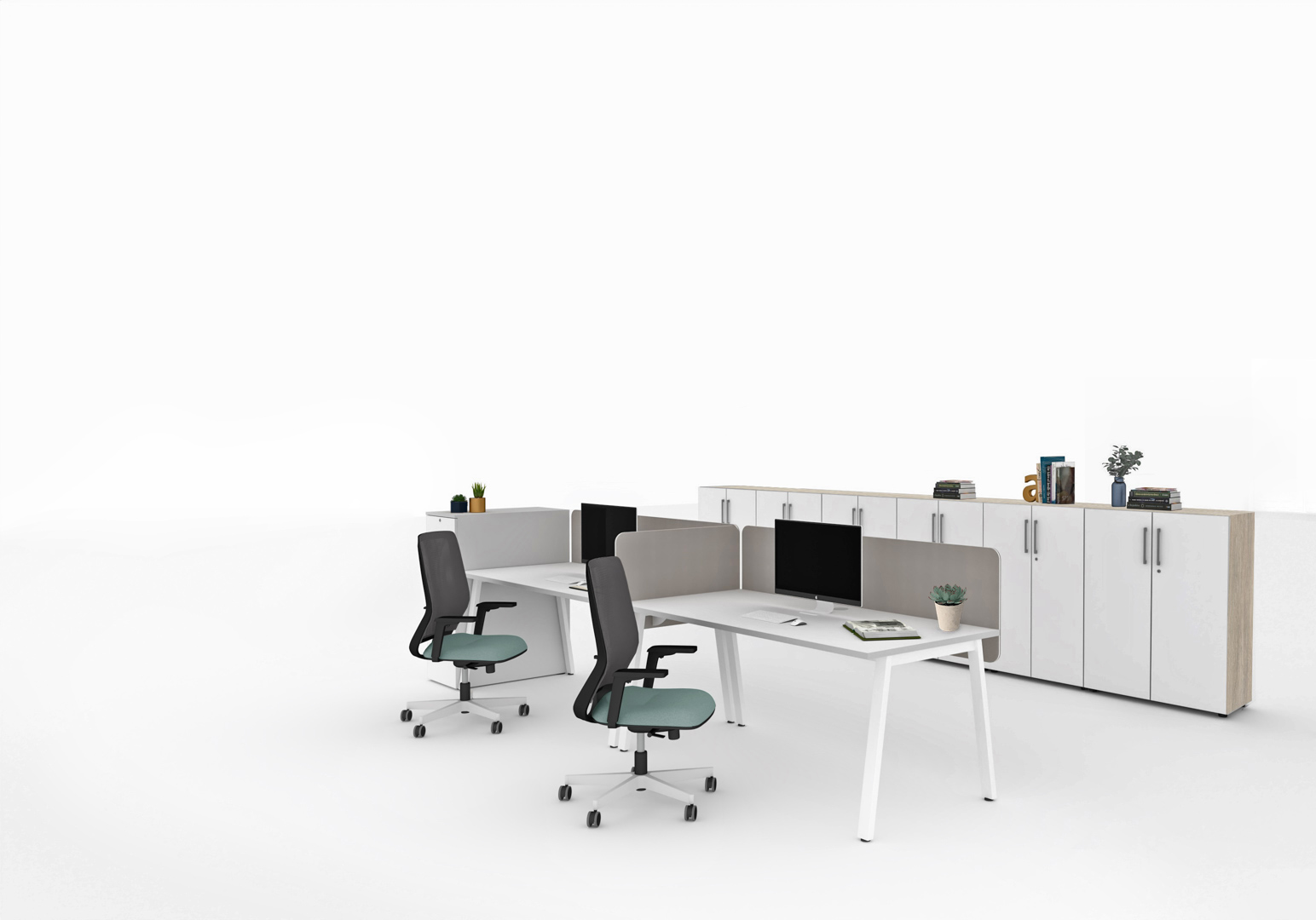 Kolekcję A-eM tworzą biurka o nietuzinkowej podstawie – charakterystyczny kształt nóg ułożonych pod kątem i podkreślających proste, ale interesujące wzornictwo całości.