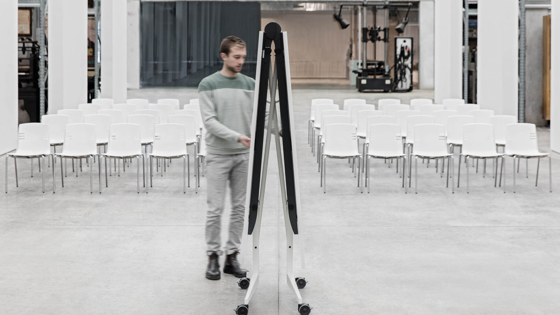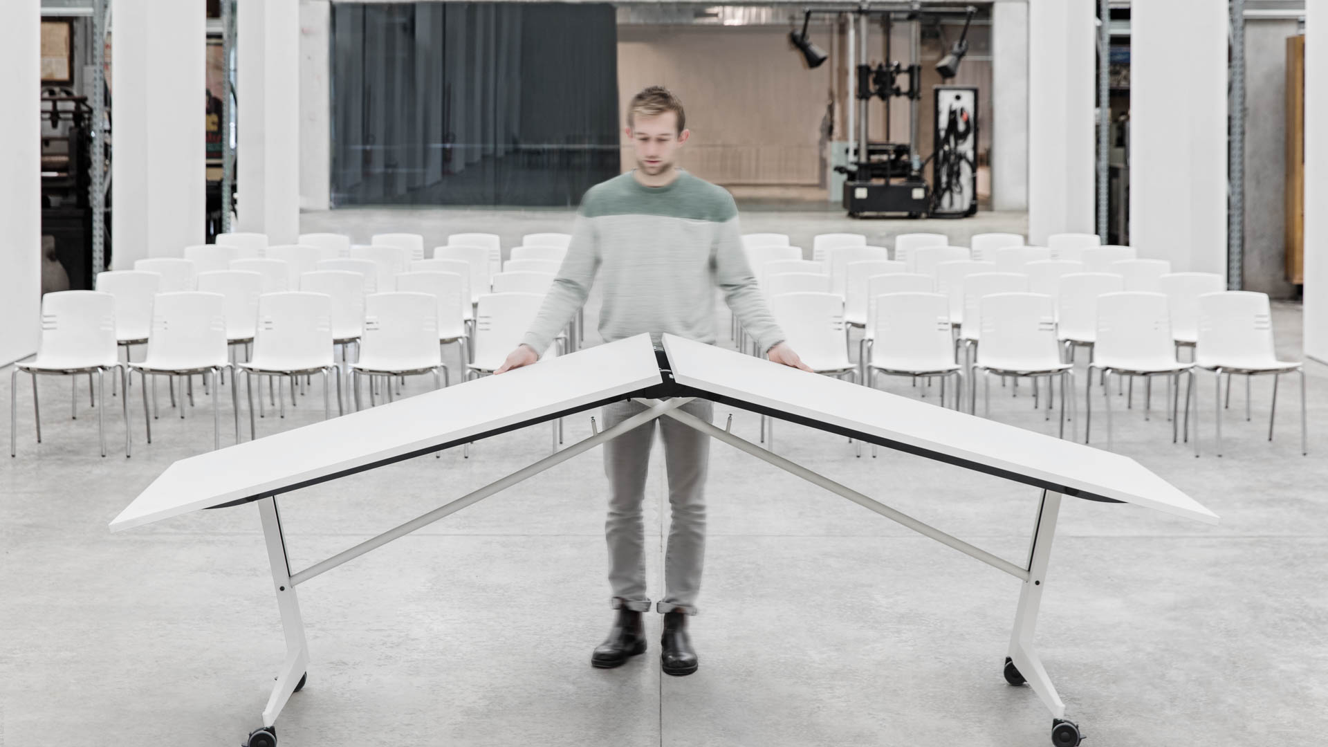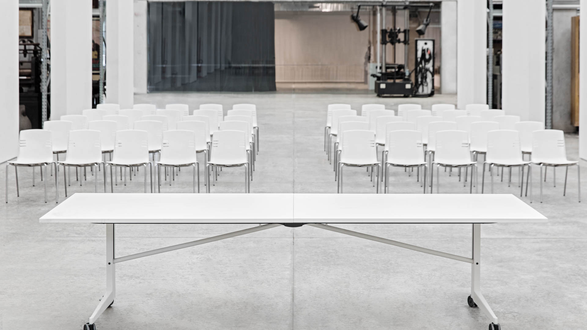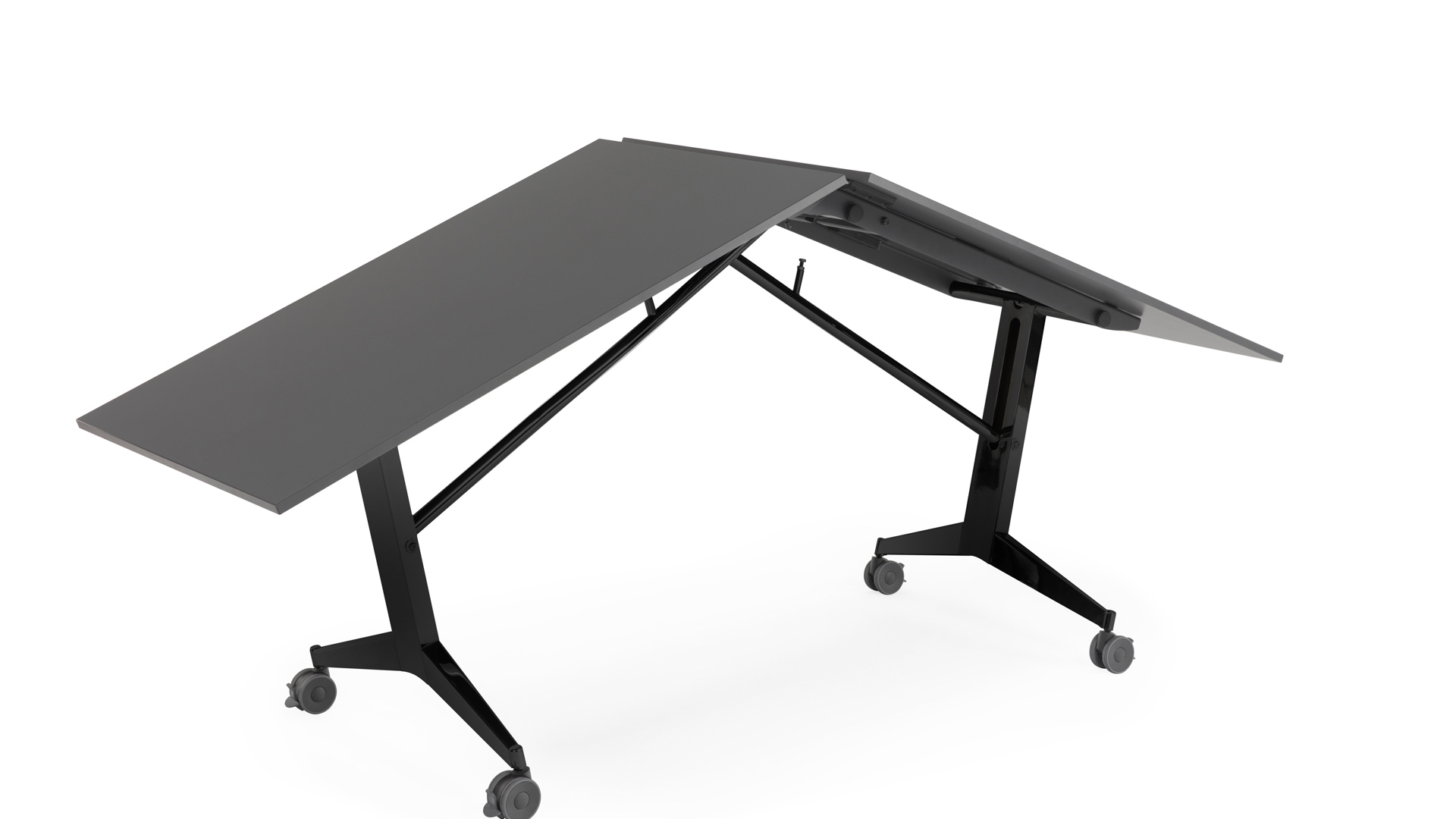 AXY-Line Mobile to stoły z praktycznie składanym blatem, doskonale sprawdzające się w przestrzeni biurowej jako meble seminaryjne bądź konferencyjne.