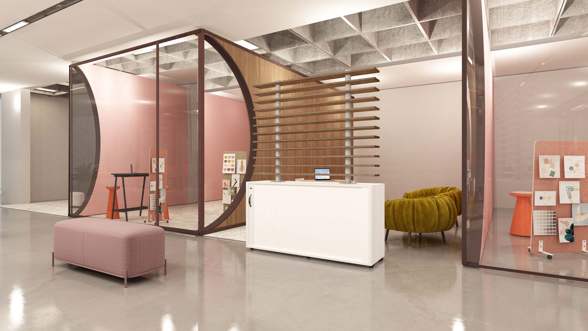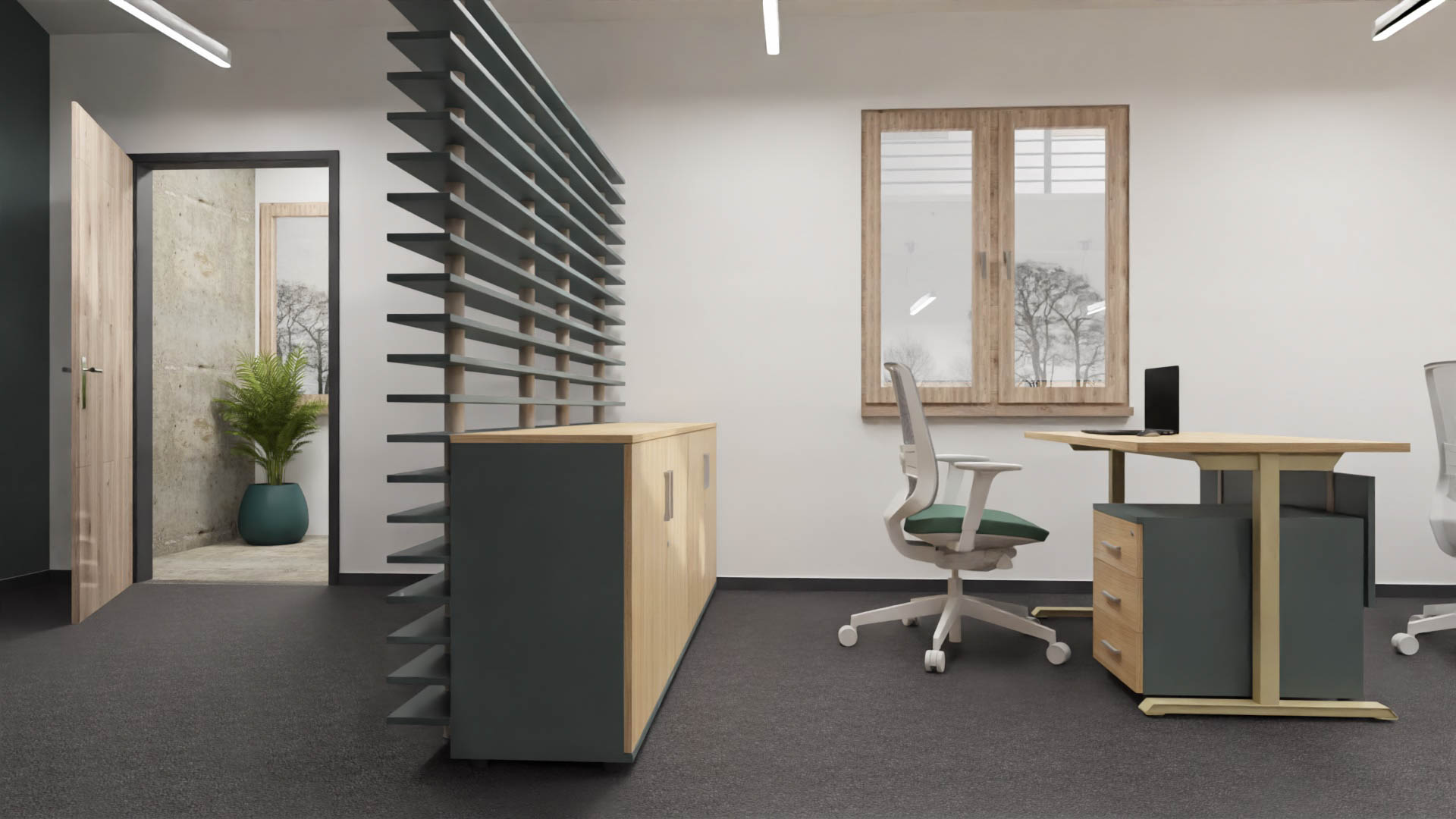 Diviso to stylowe i proste rozwiązanie stałego podziału przestrzeni biurowej. Pozwala na rozdzielenie różnych stref biura, dając poczucie intymności.