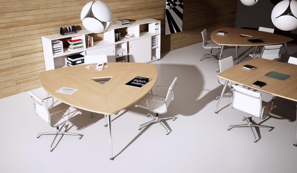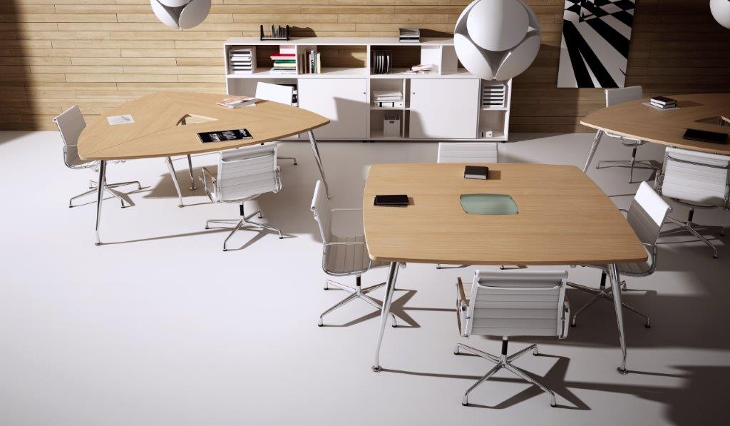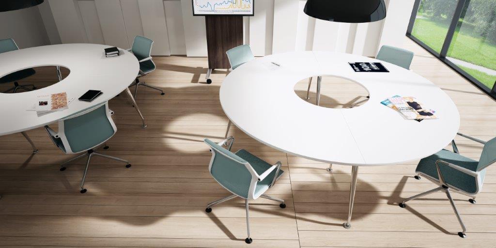Okrągłe, kwadratowe, prostokątne lub trójkątne – stoliki okolicznościowe Sirio tworzą wyjątkowe miejsca spotkań z klientem lub pracy zespołowej.