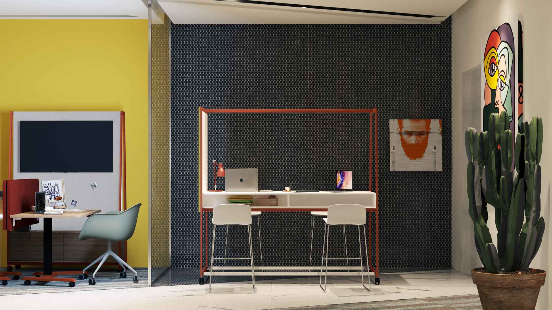 Ciągle zmieniające się nowoczesne biuro korzysta z różnych technologii, dlatego w kolekcji Wariant znajdziemy projekt mobilnego stojaka na telewizor służącego do prezentacji i spotkań.
